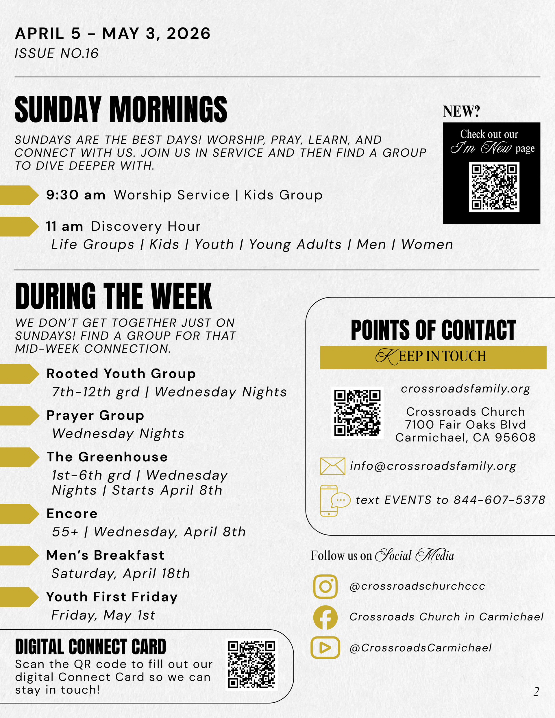 Text "EVENTS" to 844-607-5378 to subscribe to automated text messages about upcoming news and events at Crossroads!
