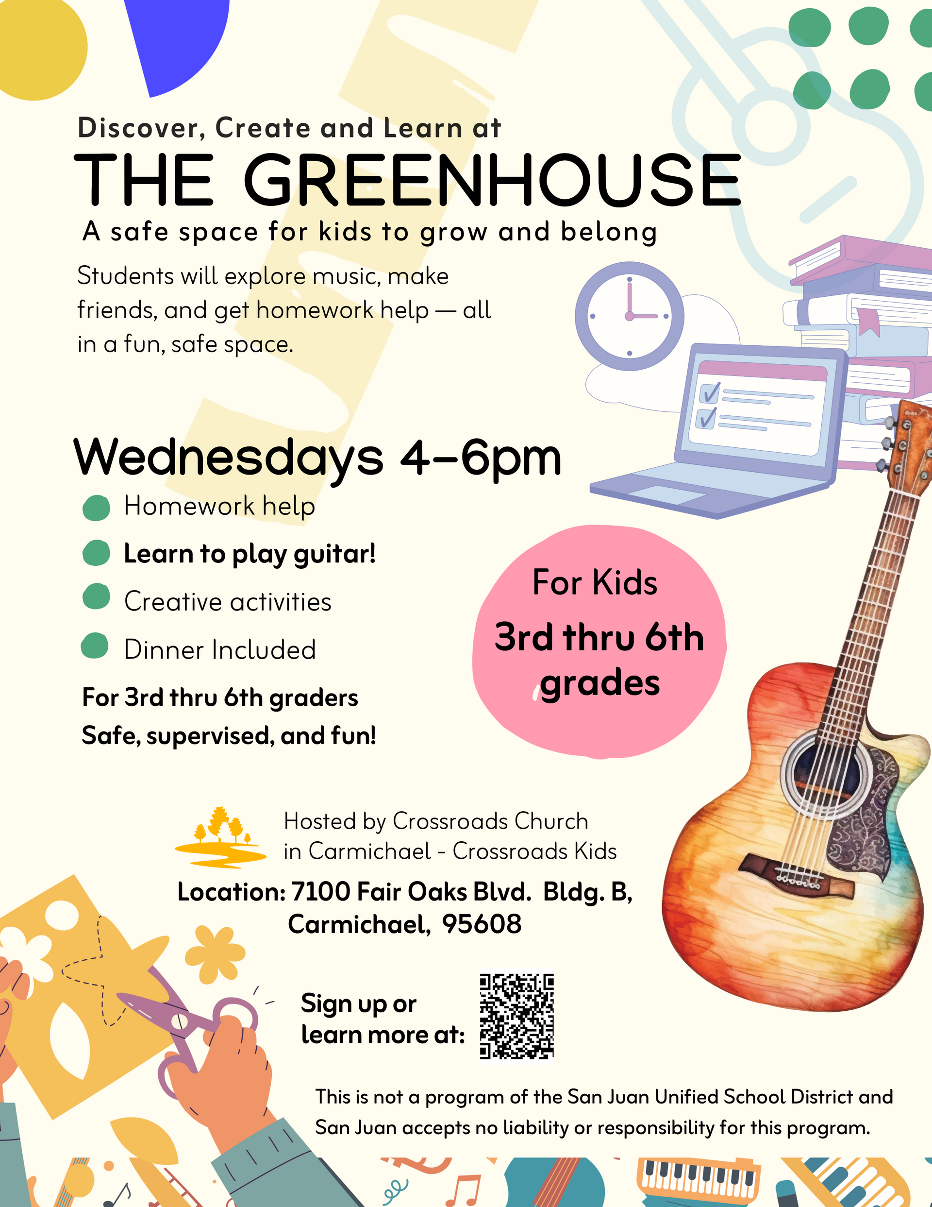 Crossroads kids offers classes for kids ranging from newborn - 6th grade on Sunday Mornings.